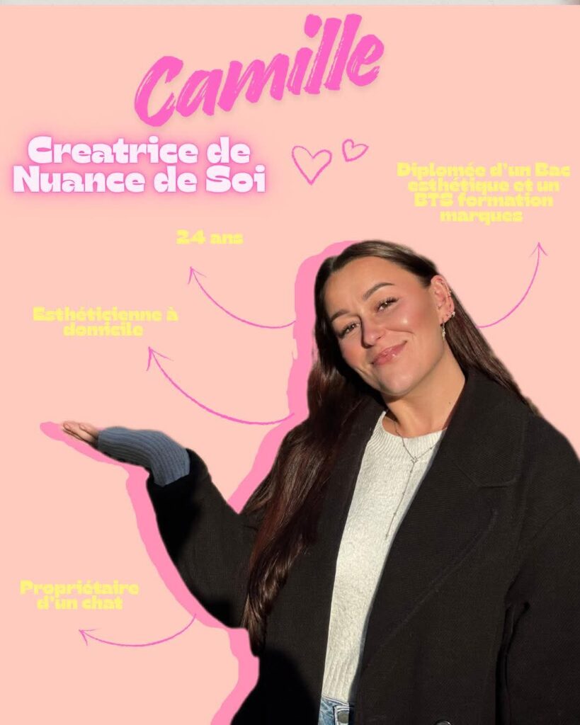 Camille, notre saisonnière mais surtout esthéticienne diplômée et auto-entrepreneuse, vous propose ses prestations directement au sein du camping. Avec Nuance de Soi, profitez d’un large choix de soins : épilations, soins des mains et des pieds, soins du corps, beauté du regard…