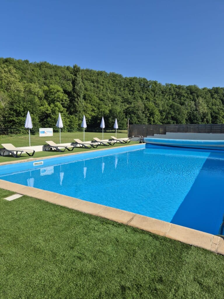 Détente et rafraîchissement au bord de notre piscine au camping d’Auberoche