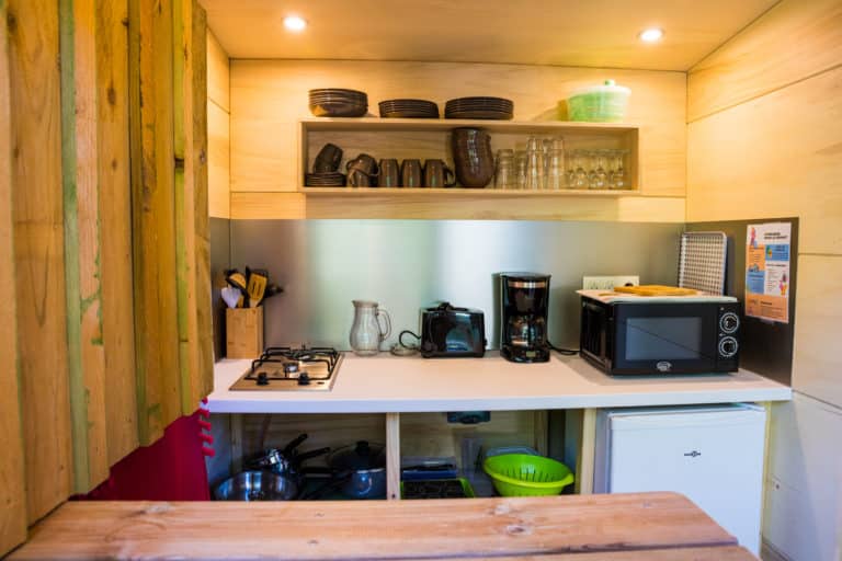Nos chalets cuisine équipée sont conçus pour offrir une expérience de camping sans stress. Que vous voyagiez en vélo, moto ou tout simplement léger, ces emplacements vous permettent de profiter de vos vacances sans avoir à transporter de nombreux équipements.