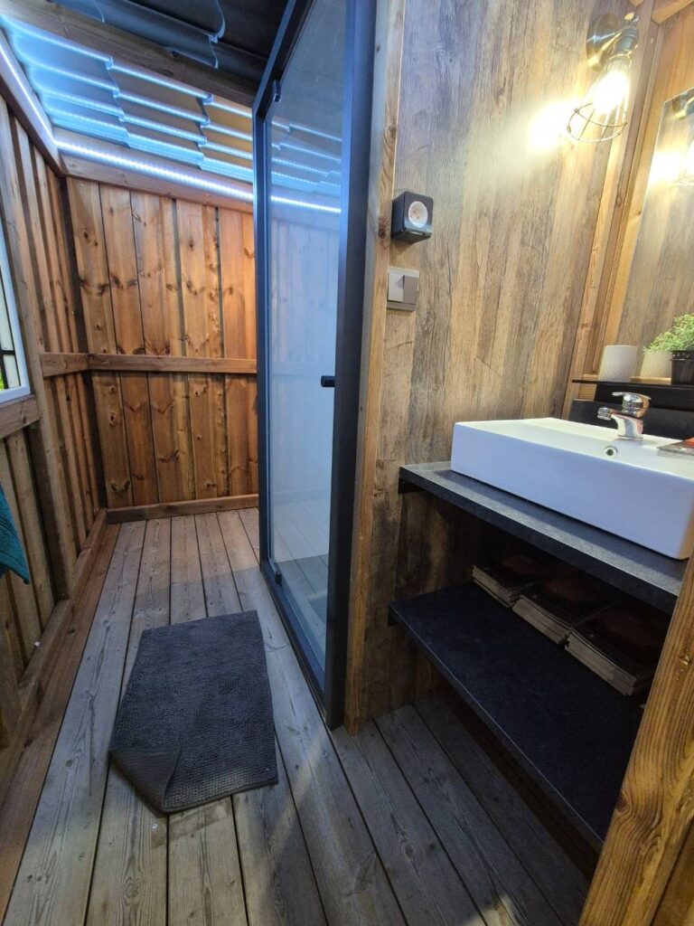 • Évier Extérieur : Un point d’eau dédié à votre vaisselle et vos besoins quotidiens, situé sur le côté du module.