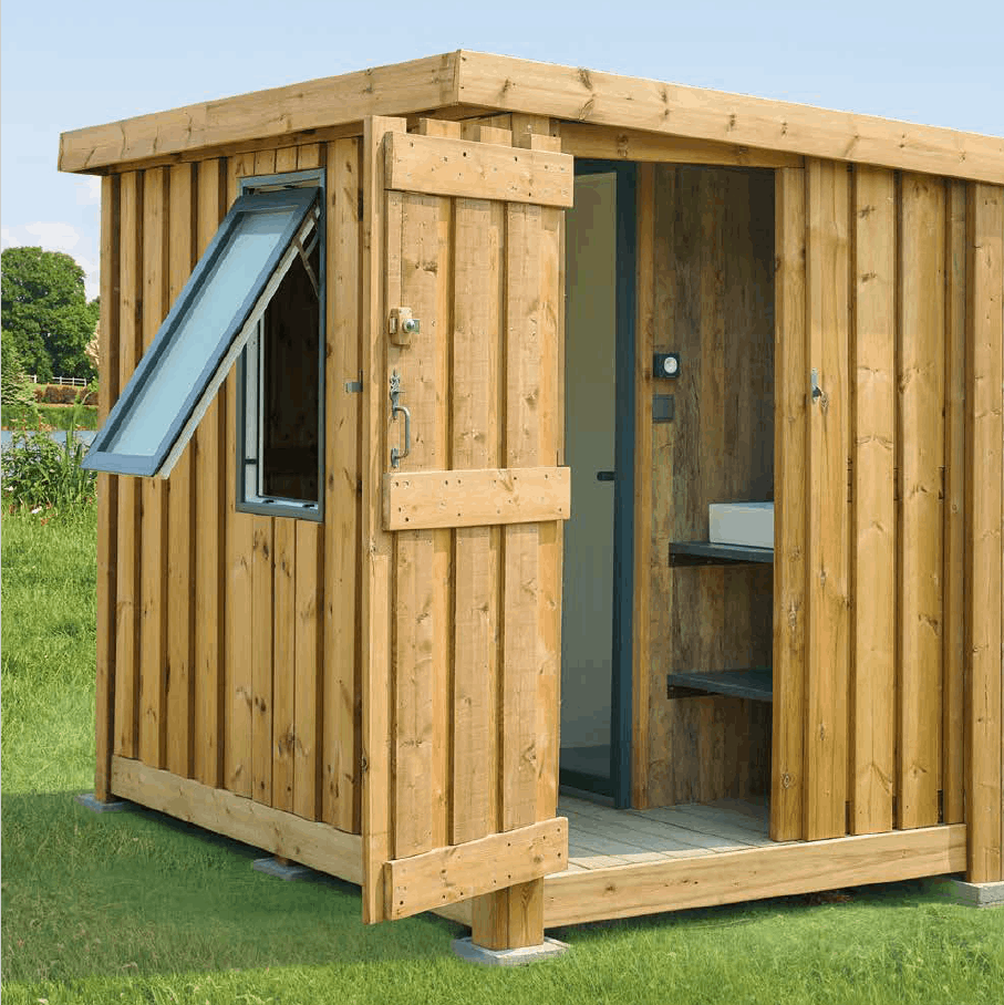Découvrez sur votre parcelle un élégant petit chalet en bois, conçu pour s’intégrer harmonieusement à l’environnement, abritant vos propres équipements sanitaires :
