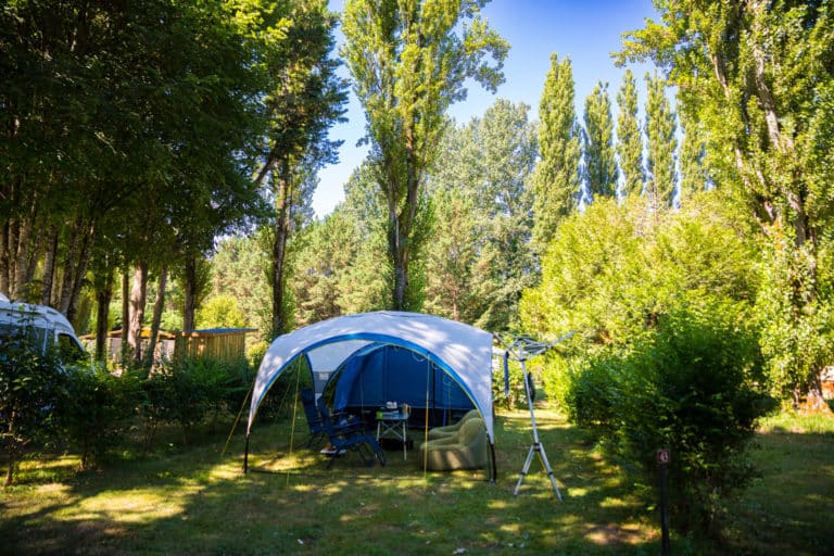 Emplacement de camping en Dordogne à partir de 21€ / nuit (forfait pour une 1 ou 2 personnes + 1 véhicule + accès à l’électricité (10 A), pensez à prévoir un adaptateur de prise européenne et une rallonge électrique.