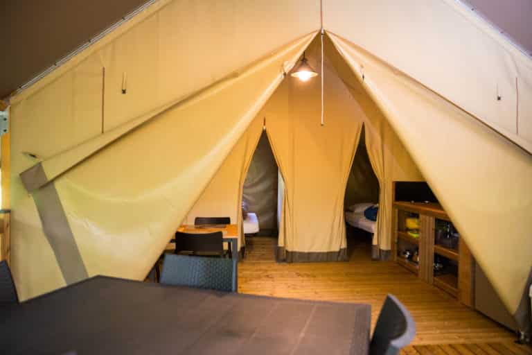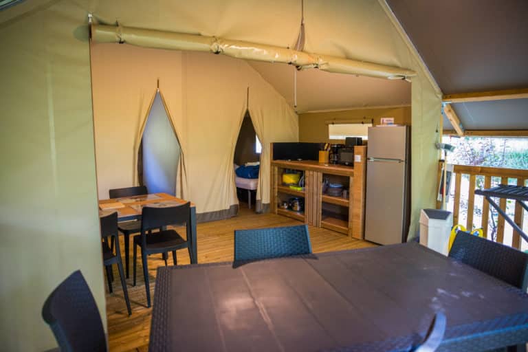 Location d’une Tente Lodge pour 1 à 4 personnes à partir de 45€ par nuit en basse saison, surface 23m2.